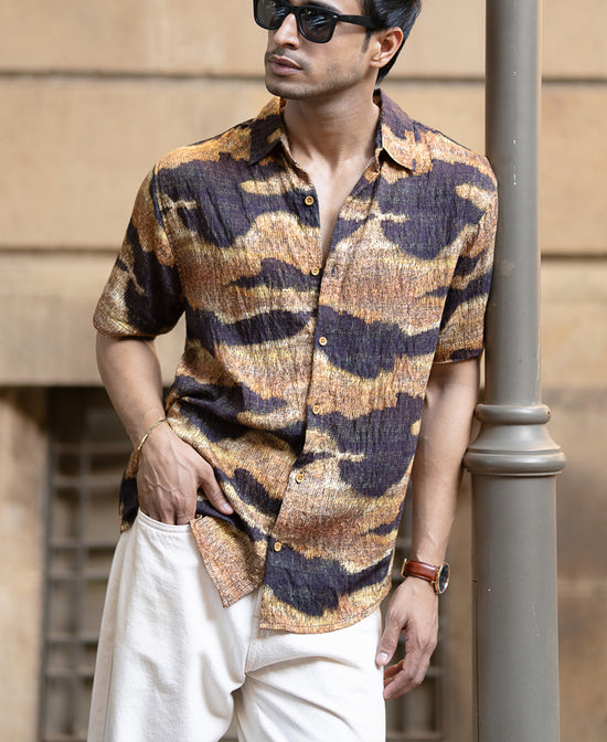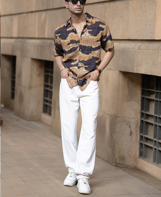 Some shirts just sit there. This one moves. With its easy, flowy fit and abstract-funky print, it brings vacation energy, even if you're just heading out for chai. Breezy, effortless, and always the best-dressed in the room.