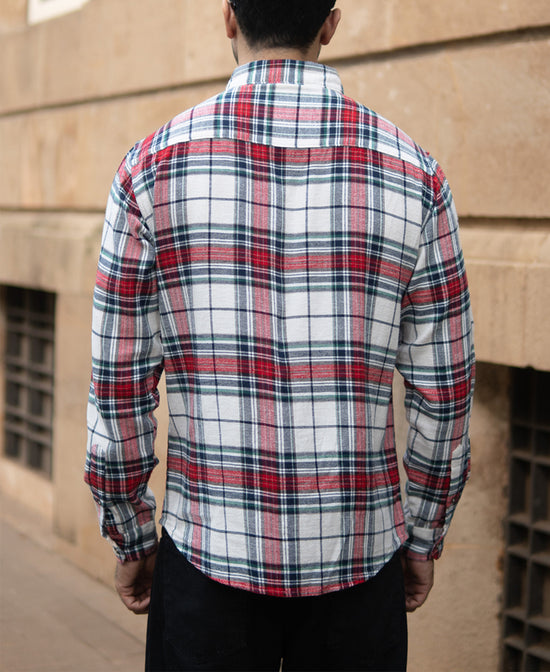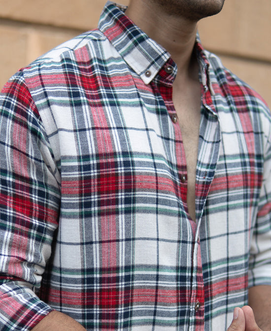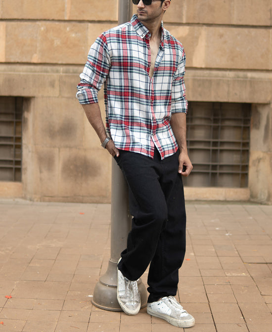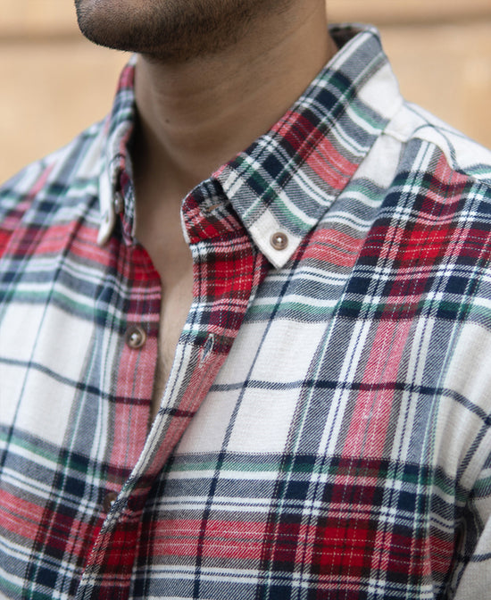 A fresh take on flannel. This shirt mixes red, white, and navy in a vibrant check pattern that pops without overpowering. Lightweight fabric makes it ideal for layering or wearing solo. Easygoing, yet sharp.