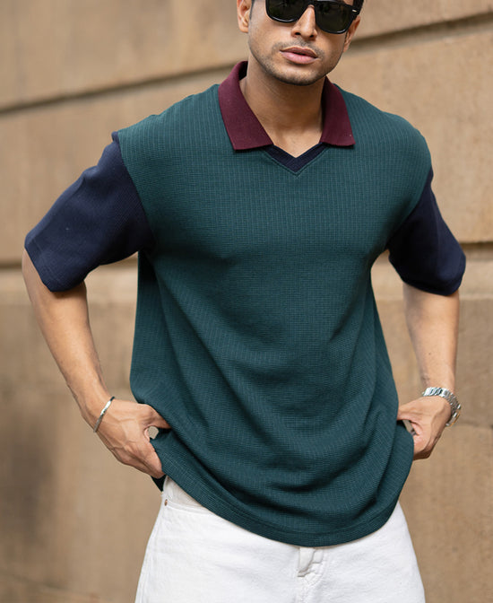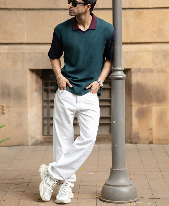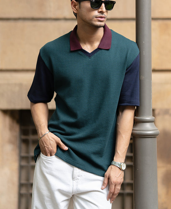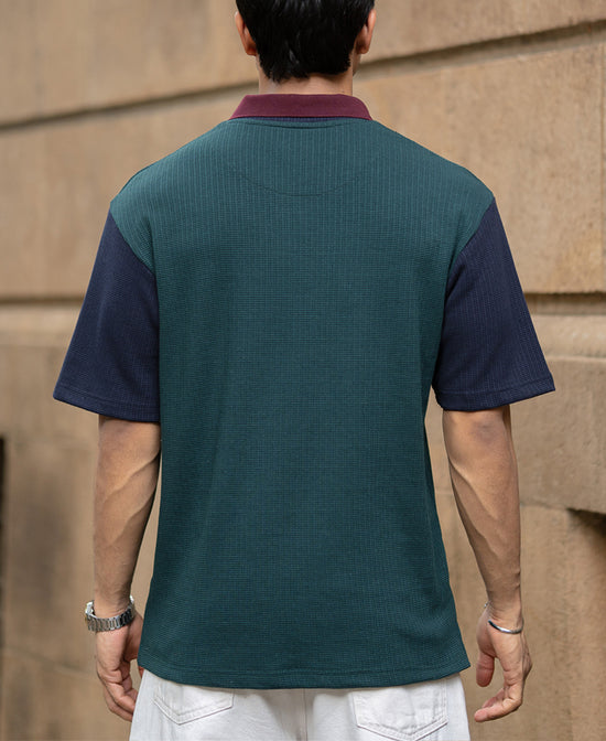Colourblock done right. This panelled t-shirt hits the right match with bold hues in just the right place; giving your outfit contrast, not chaos. The fit stays easy, the vibe stays loud. Pair with joggers, jeans, or cargos - it brings the energy even to stone.