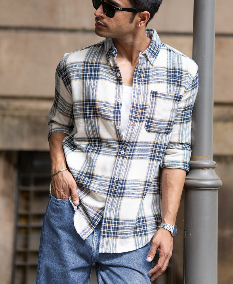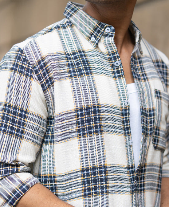 Add vibrance to your wardrobe with the Multicolour Structured Checks Button Down Shirt. Featuring a lively check pattern in earthy and warm tones, this shirt blends casual comfort with refined detailing. The button-down collar makes it suitable for both work and weekend outings.