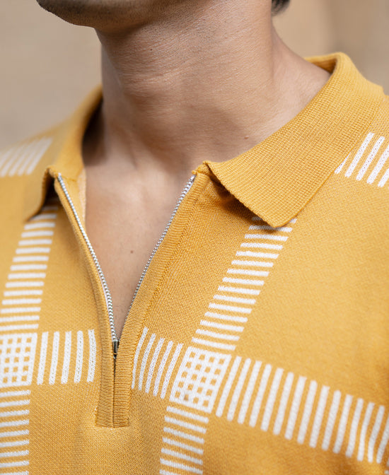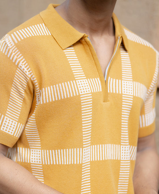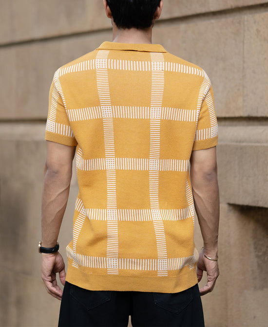 Mustard Knitted Checks T-Shirt