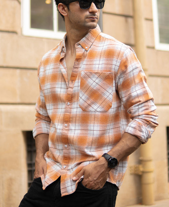 Retro meets rhythm. This Mustard Knitted Checks Shirt brings vintage grid vibes into the now. The warm hue pops just enough, while the textured checks give it soul. Throw it on with loafers or sneakers—either way, you’re serving groove and grit.