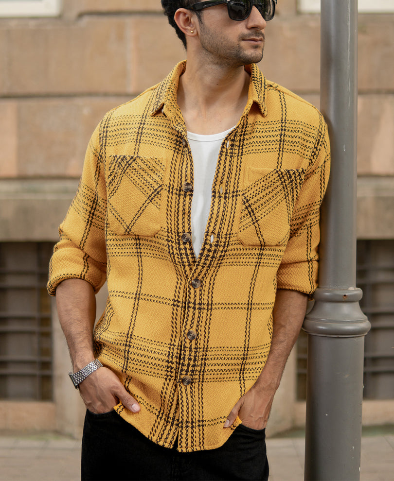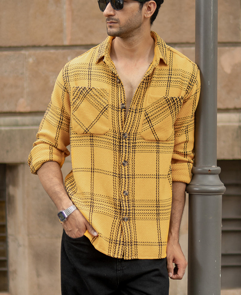 Mustard Yellow Structured Check Shirt