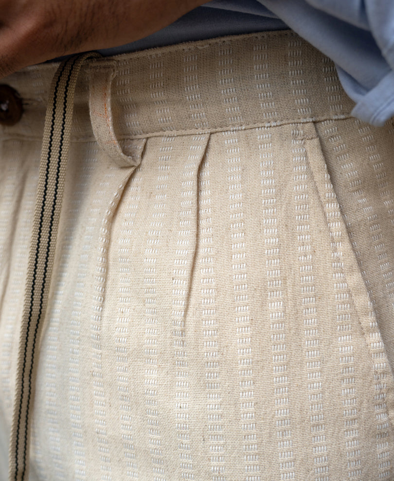 Step into effortless style with these pinstripe trousers. Tailored for comfort and a smart-casual look. The natural tone works with everything, the stripes add quiet character. Basically, your wardrobe’s peace treaty between comfort and class.