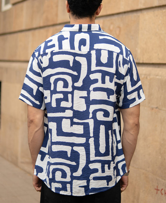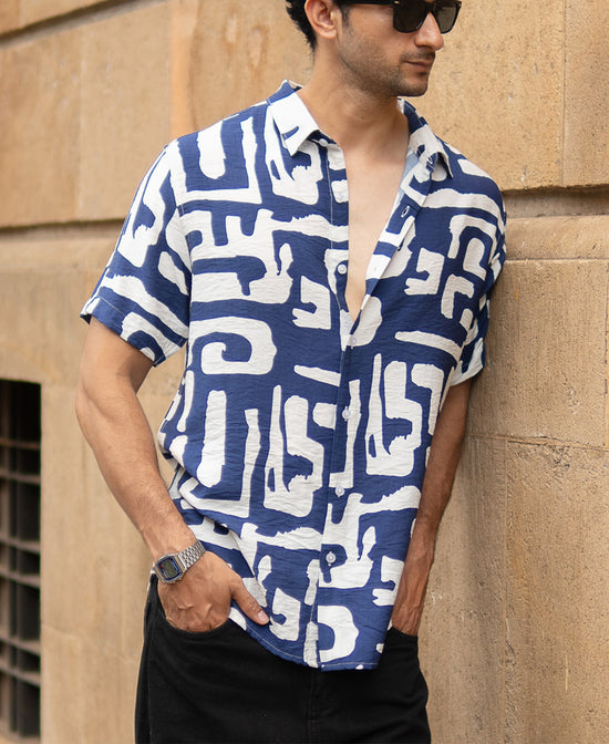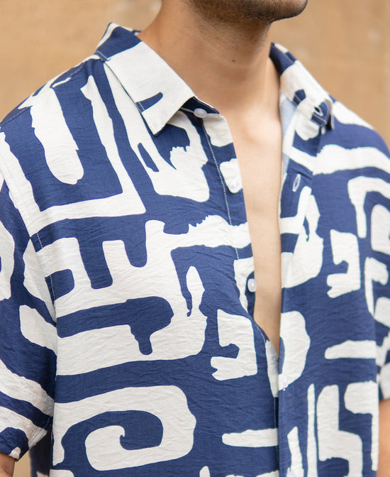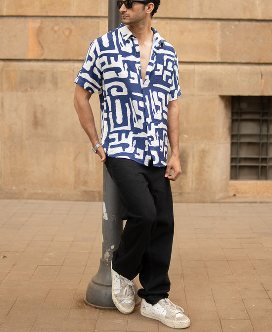 This Navy Abstract Print Flowy Shirt brings together a deep blue base with a playful, artsy pattern that feels fresh and free-flowing. The fabric? Light, breathable, and made to drape just right. Whether you button it up for dinner or leave it open with a white tee inside, this one’s built for movement and mood.