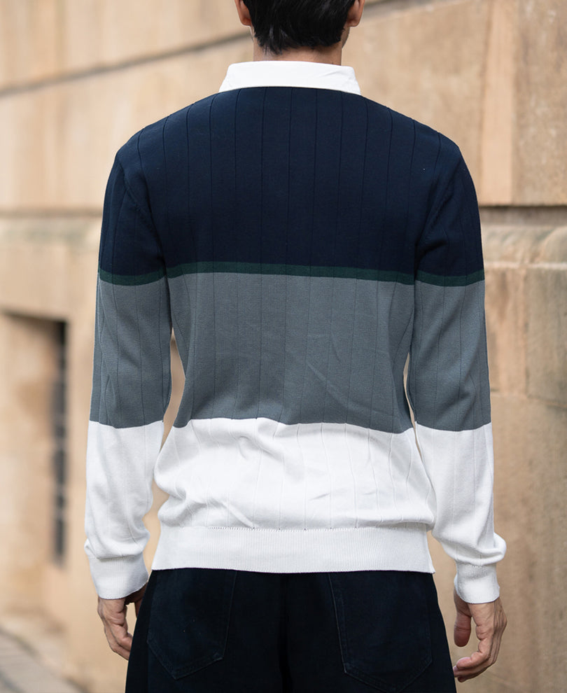Updating the streetwear meets smart-casual series with these must-have sweatshirts for men. The fit is the modern version of the classic full sleeves t-shirt and has an attached collar and panel pattern. It is made of knitted fabric to keep you comfortable, sweat-free, and stylish. Pair it with denim jeans or tailored trousers to elevate your everyday style.