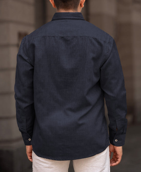 Navy Blue Plain Regular Fit Full Sleeves Shirt