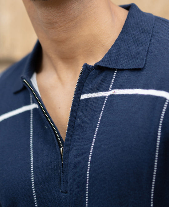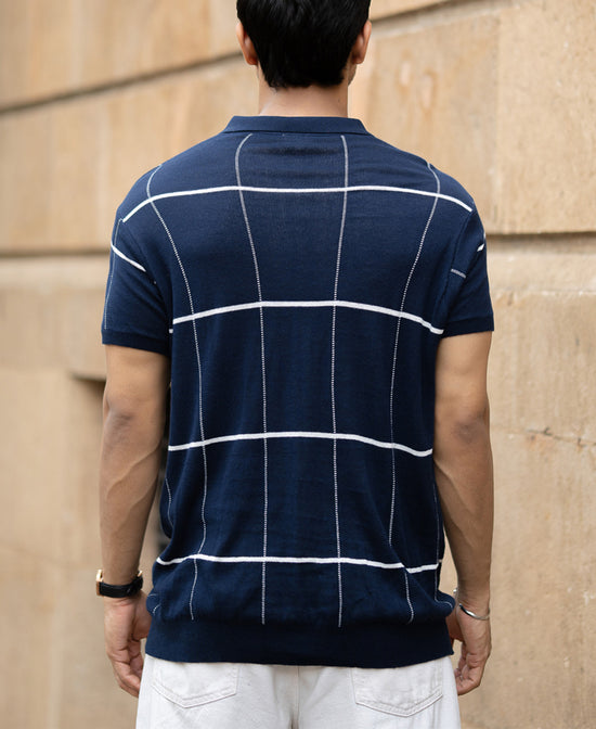 Own the understated style with our Navy Knitted Checks T-Shirt. Designed with a soft knit texture and a clean check pattern, it strikes the perfect balance between relaxed and refined. Made from 100% premium materials, this T-shirt provides superior warmth while feeling soft and allowing easy breathability. Easy to dress up or down, it is your go-to fashion upgrade to define style and luxury hand-in-hand.