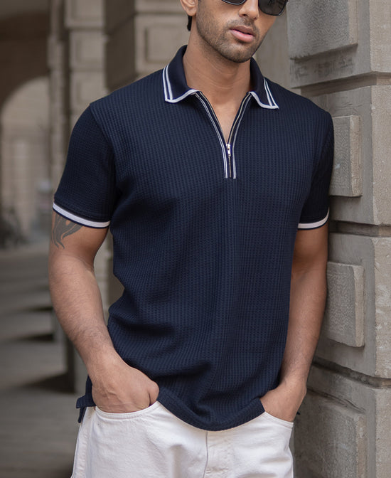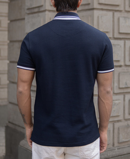 A polo that actually respects your time—structured for sharpness, relaxed for comfort. This navy number does the heavy lifting, keeping you polished with zero effort. Whether it’s brunch, business, or a last-minute plan, this one’s got your back.