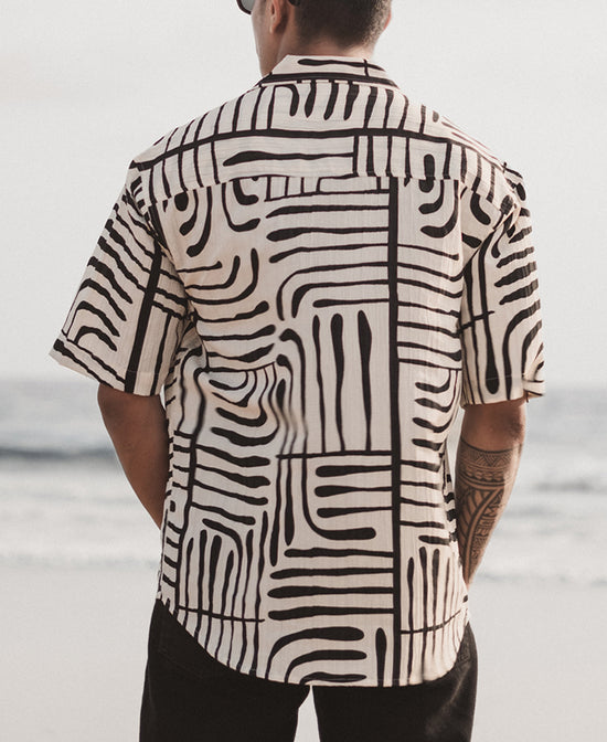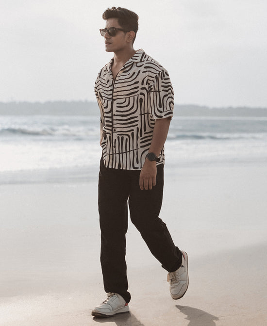 Make an impactful statement with our striking abstract print oversized shirts for men. The printed shirt's bold monochrome pattern delivers a visually dynamic contrast, while the soft premium fabric ensures comfort throughout the day. Pair with black jeans for a contemporary ensemble that flies anywhere from the meeting room to the beach.