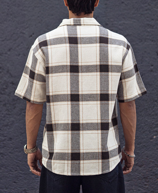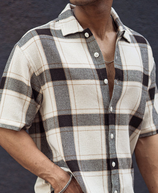 Looking for a go-to shirt for any occasion? This Grey and Off White Regular Fit Waffle Checks Shirt has got you covered. Crafted from premium, textured fabric, it keeps you comfortable all day long. The classic checkered pattern and chest pockets add a touch of sophistication, making it ideal for casual outings or semi-formal events. Match it with jeans or chinos for an effortlessly polished appearance.