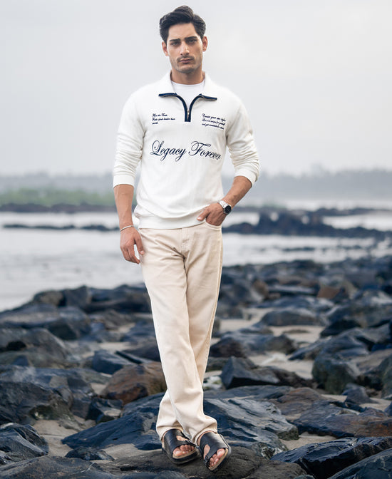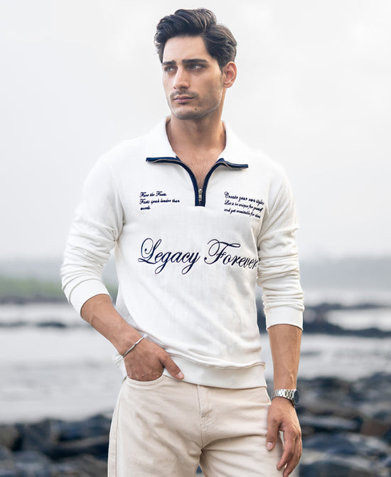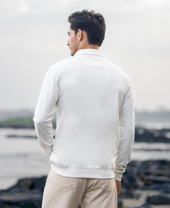 A canvas of calm with a dash of contrast. This off-white sweatshirt features standout embroidery that adds personality without overpowering your look. Soft fleece, relaxed fit, and subtle artistry - everything you need to stay cozy and aesthetic.