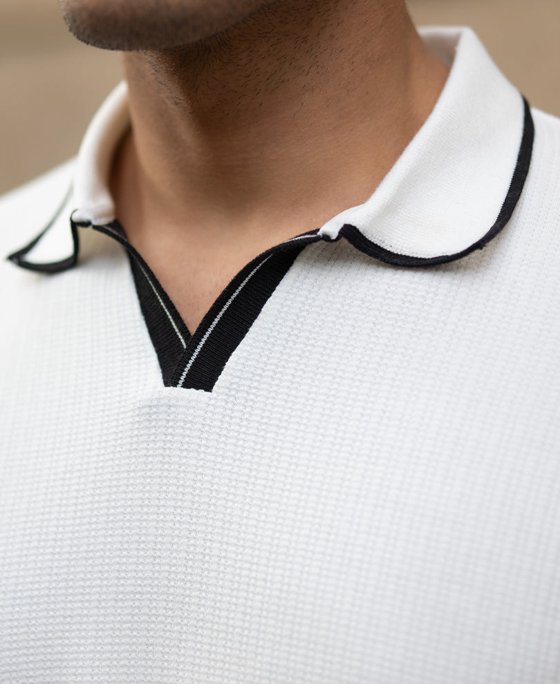 Off White Contrast Polo T-Shirt
