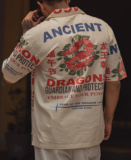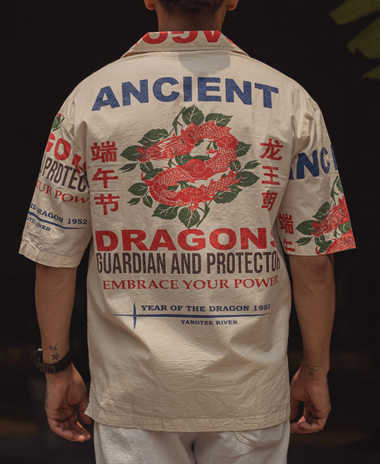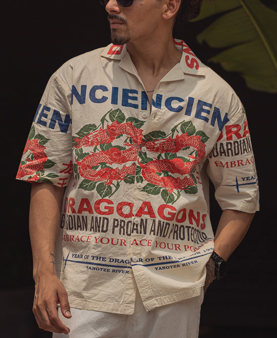 Off White Printed Oversized Cuban Collar Half Sleeve Shirt