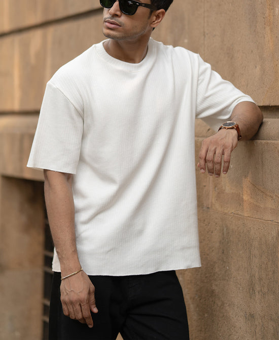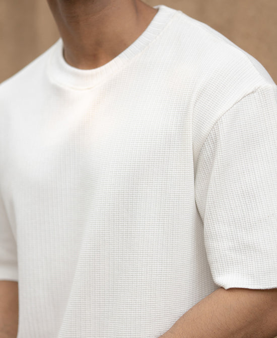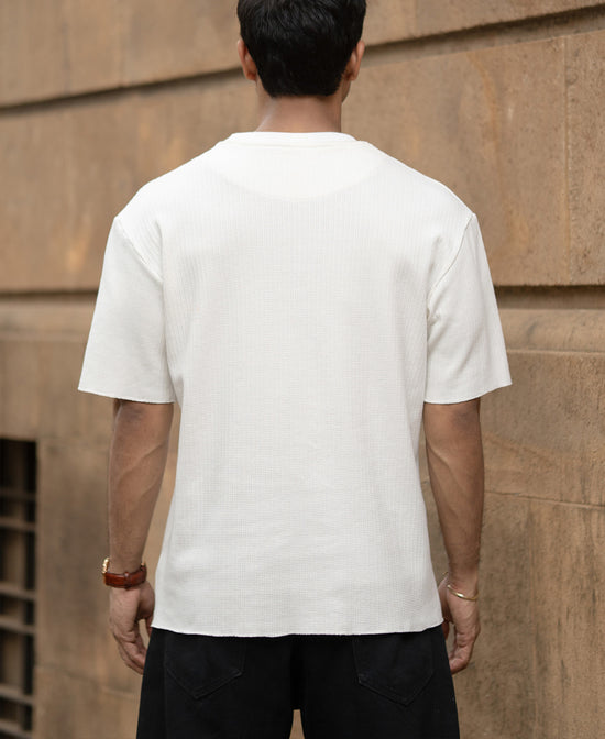 This Off-White Structured Knit T-Shirt is proof that basics don’t have to be boring. Crafted with a subtle textured knit and a no-fuss silhouette, it's designed to feel easy but look sharp. Whether you're layering it up or wearing it solo, this piece brings a quiet kind of confidence to your wardrobe—simple, but never forgettable.