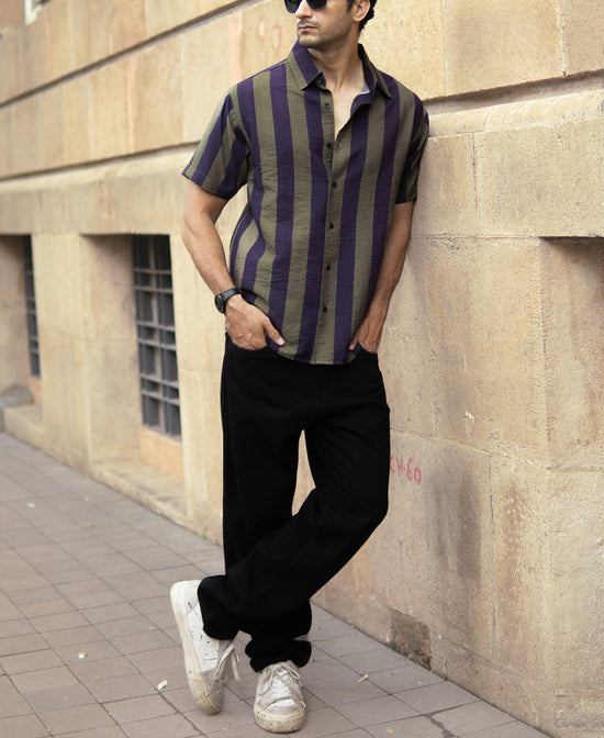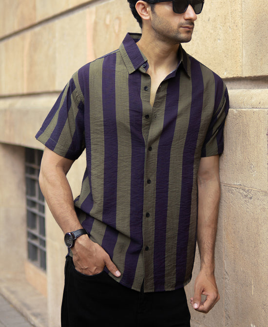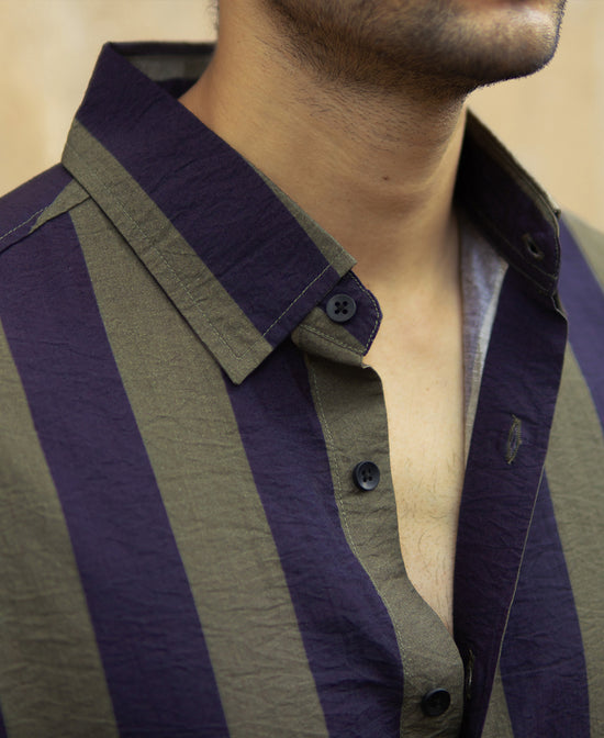 Stripes that get noticed. This Olive And Navy Lightweight Stripe Shirt blends casual charm with just enough detail to make it stand out. Whether it’s for a chill day out or a low-key evening plan, this shirt is your easy fix for effortless style. Just throw it on, and let the stripes do the talking.