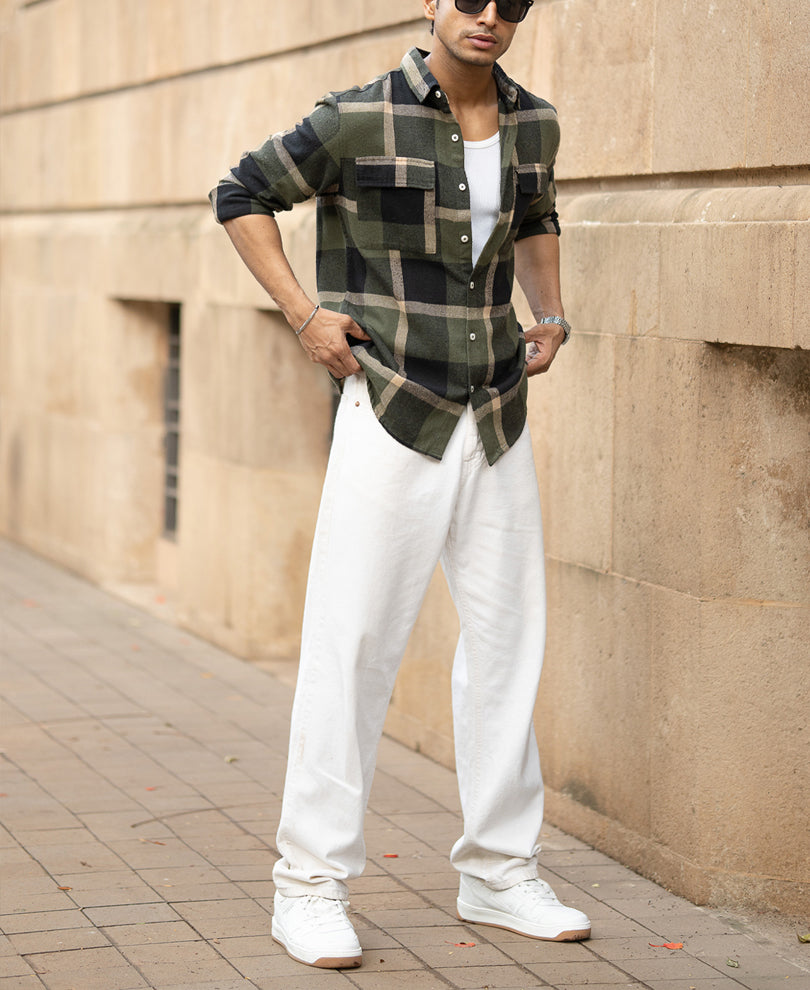 The kind of shirt that feels rugged but fits like a dream and is ready for anything. With its olive tones and brushed softness, this check shirt has “fall staple†written all over it. Throw it over a tee or wear it buttoned-up; it’s built to flex with your day.