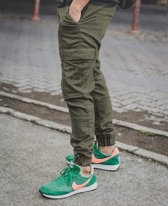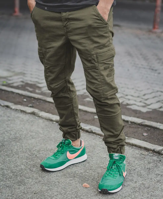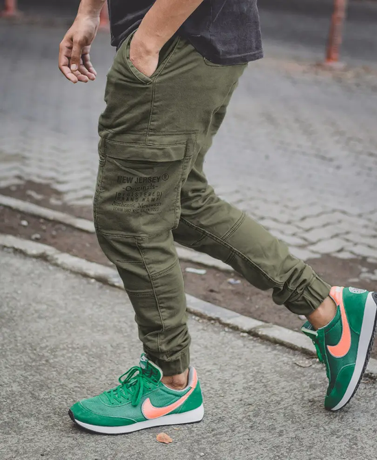 Here's an on-the-go streetwear must-have, cargo pants for men. This style is a staple and a trend. The cargo pants are made of non-stretchable cotton fabric. Designed for full-time comfort, the cargo pants have an adjustable waistband, utility pockets, and an ankle fit. Pair them with an oversized t-shirt for a modern casual look.