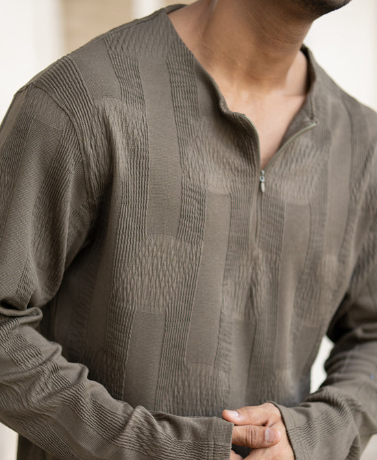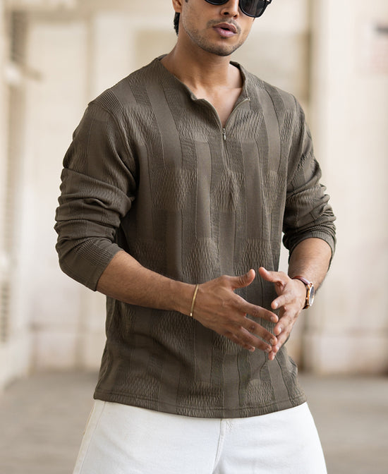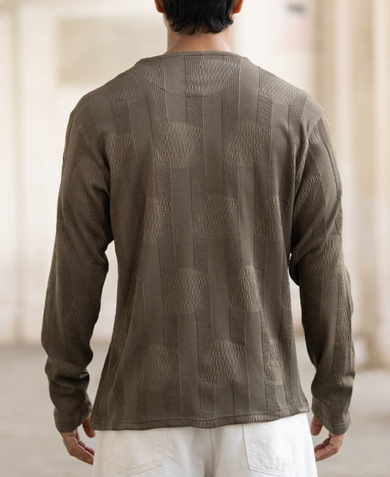 Olive Green Structured Full Sleeves Regular Fit T-Shirt
