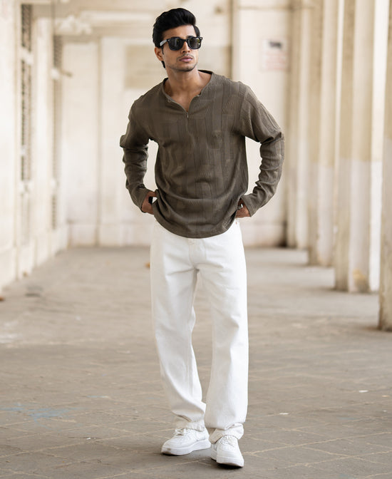 The Olive Green Structured Full Sleeves Regular Fit T-Shirt is here to show that style doesn’t have to be complicated. Made with 93% polyester and 7% spandex, it offers the perfect balance of durability and stretch. The olive green shade gives you an earthy, refined look that’s perfect for the guy who likes to keep it understated yet sharp. It’s the t-shirt that can take you from work to weekend with zero effort but all the style.