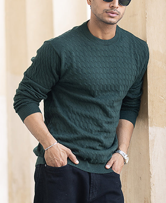 Olive Green Structured Regular Fit Full Sleeves T-Shirt