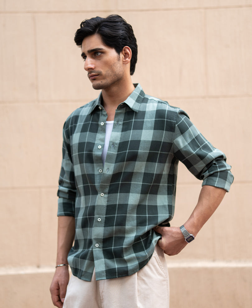 You need to get this Lightweight shirt that often becomes the most-used piece in a wardrobe, and this Olive Checks Shirt carries that everyday reliability with ease. The soft olive base paired with subtle check detailing creates a calm, outdoors-inspired personality that feels grounded yet modern. Designed with breathable construction, a structured collar, and full sleeves, it keeps long days comfortable without losing shape. It’s the kind of shirt that quietly works across busy schedules, weekend drives, and evenings when plans appear out of nowhere.