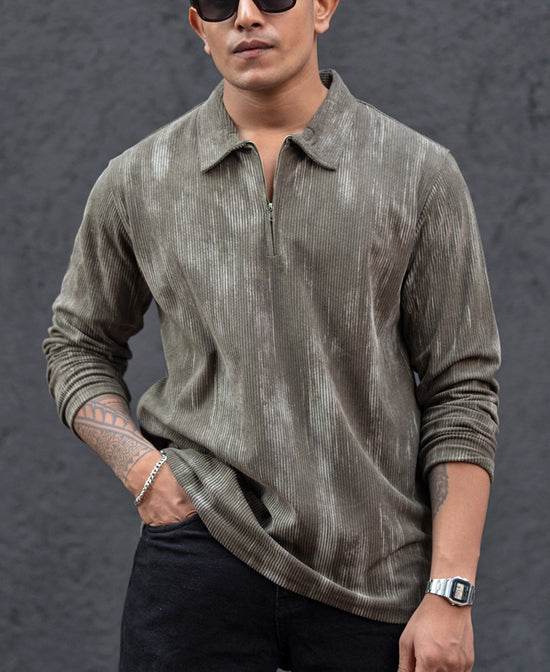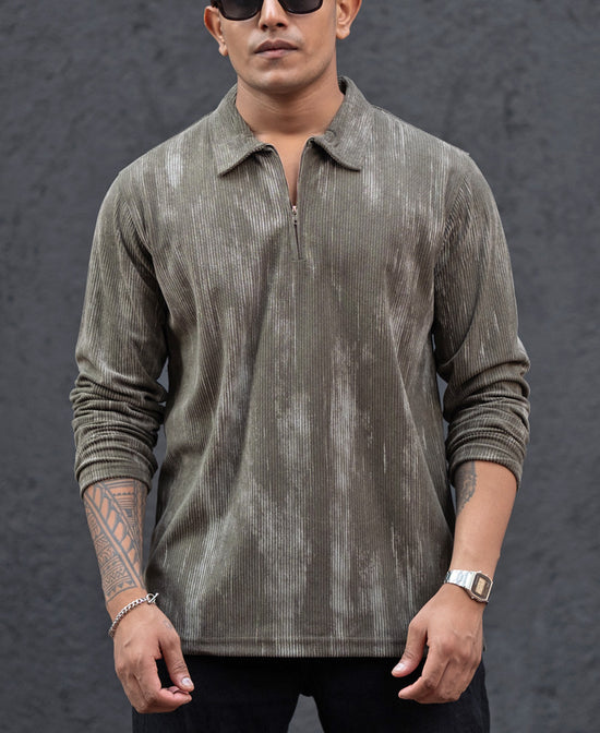 Olive Structured Full Sleeves Regular Fit T-Shirt