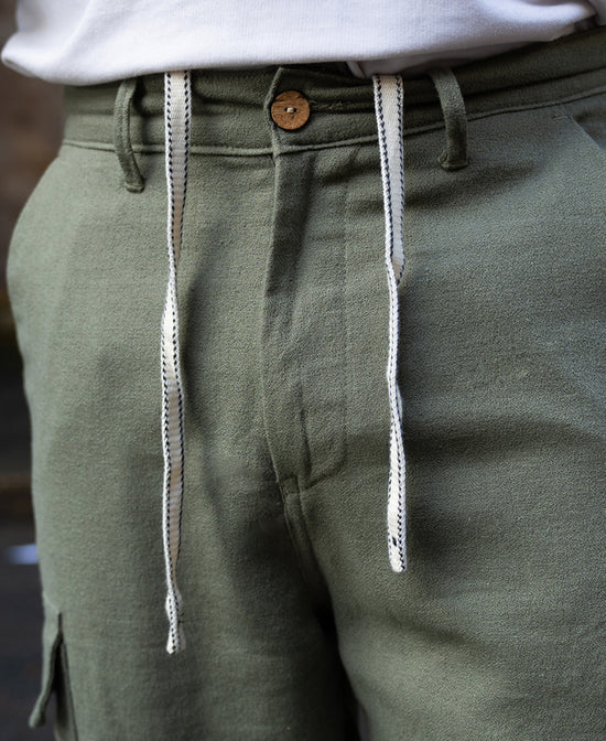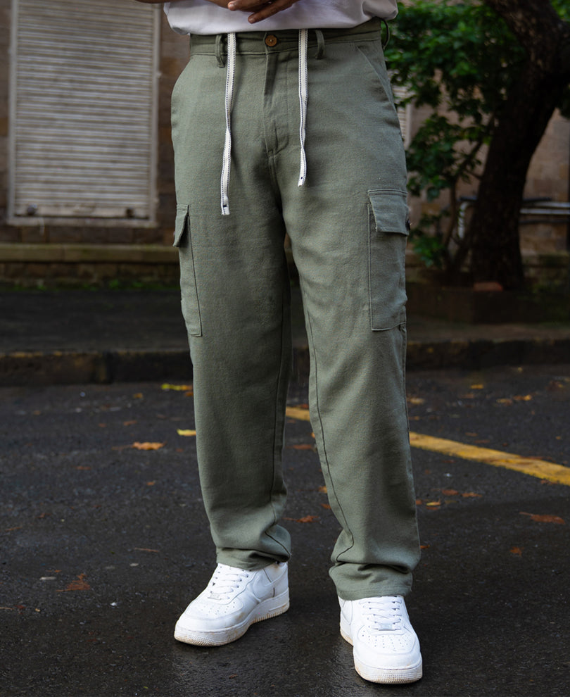 Level up your everyday look with these Olive Structured Linen Blend Cargo Trousers. Crafted for the modern minimalist, they combine clean tailoring with laid-back utility details. The linen-blend fabric keeps things cool and breathable, while the structured silhouette adds a polished finish. Functional cargo pockets and wooden button accents bring subtle character — perfect for styling with sneakers, loafers, or even boots. A wardrobe essential that moves effortlessly from day to night.