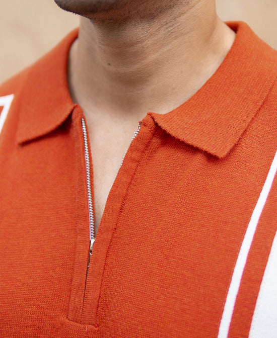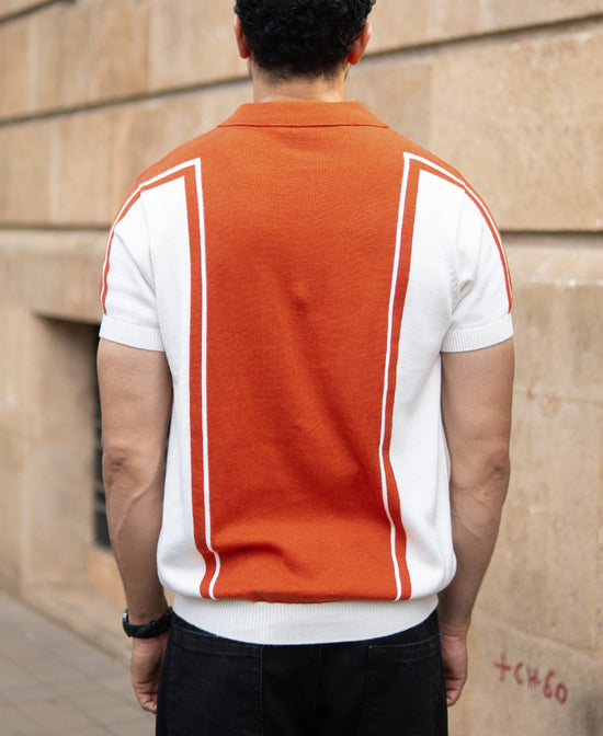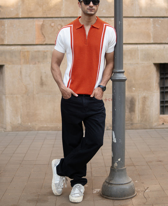 With bold retro blocks of burnt orange and crisp white, this knit polo gives off major ‘70s bad boy energy. Zipper detail adds a touch of sport, and the fit? Effortlessly flattering. For the days when you feel like the main character.