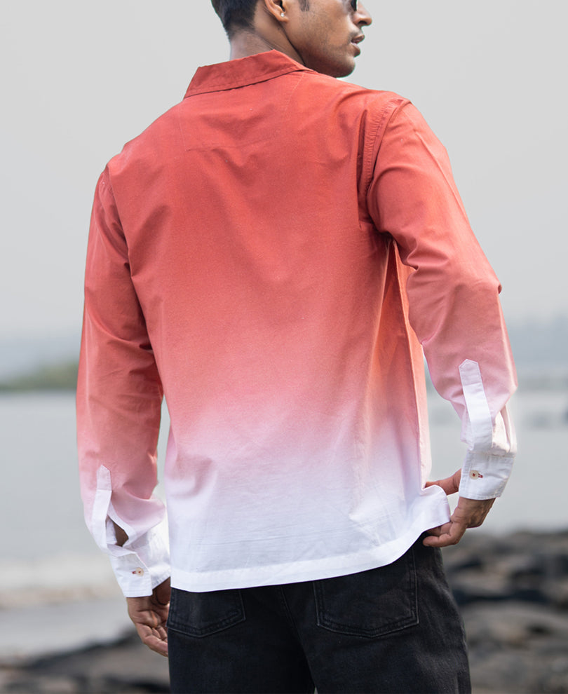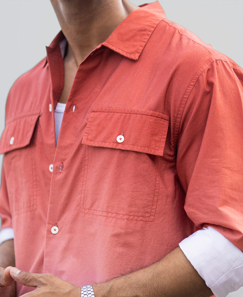 A bold play of rust and white that makes an instant statement. Designed with dual utility pockets and a soft ombre transition, this shirt brings structure with ease. Lightweight, breathable, and full of character, it’s that one piece you reach for when you want to stand out by pairing almost anything with it.
