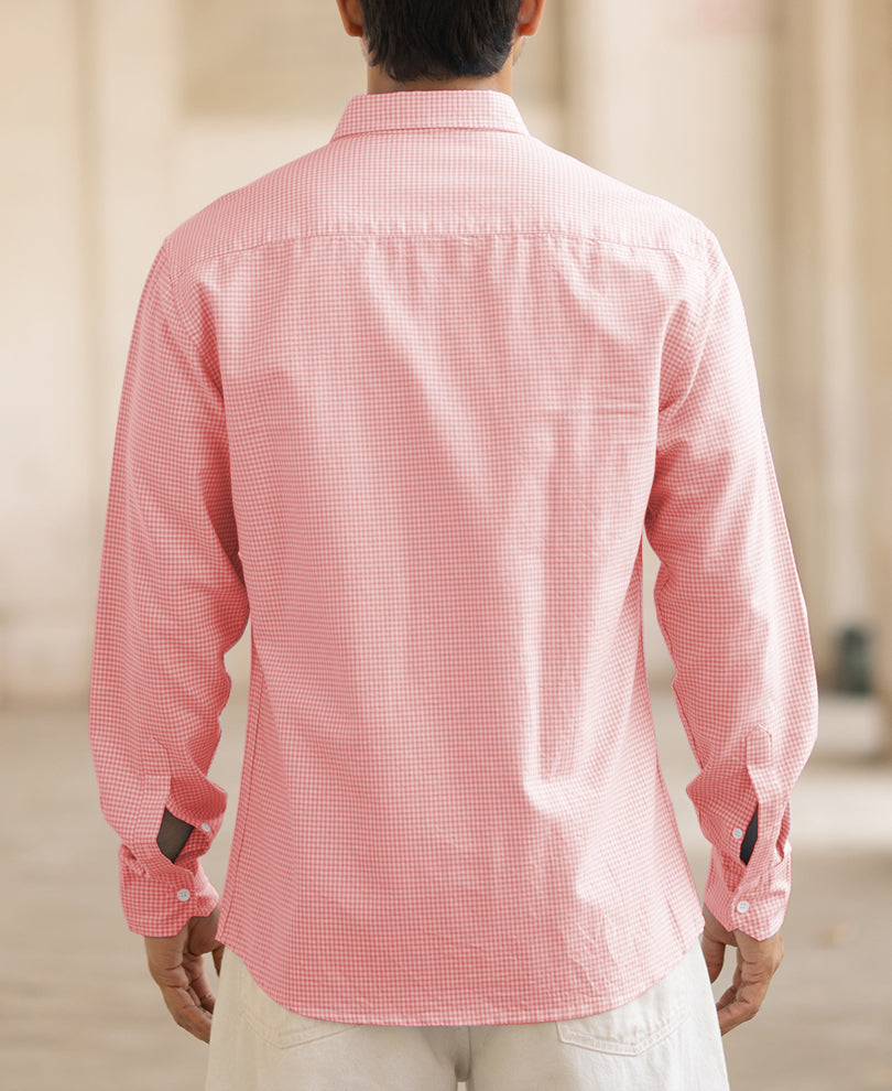 Peach Microchecks Oxford Shirt