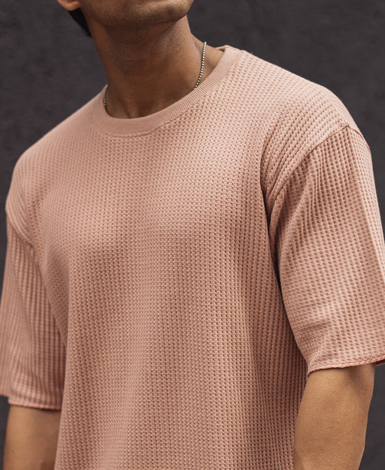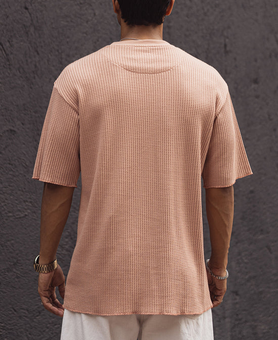 Peach Structured Oversized Half Sleeves T Shirt