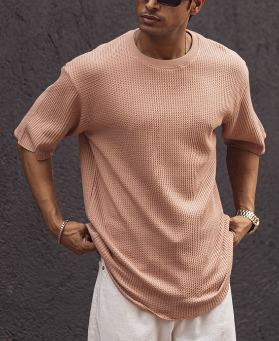 Peach isn’t just a color—it’s a mood, a flex, a whole vibe. This structured oversized T-shirt is for the guy who knows how to keep it cool without even trying. The 50% cotton, 50% polyester blend makes sure you get the best of both worlds—breathable softness with durability that doesn’t give up after a few washes. The oversized fit isn’t just about comfort; it’s about making a statement without shouting. The half sleeves and round neck bring a laid-back attitude, perfect for the guy who moves through life like he owns it.