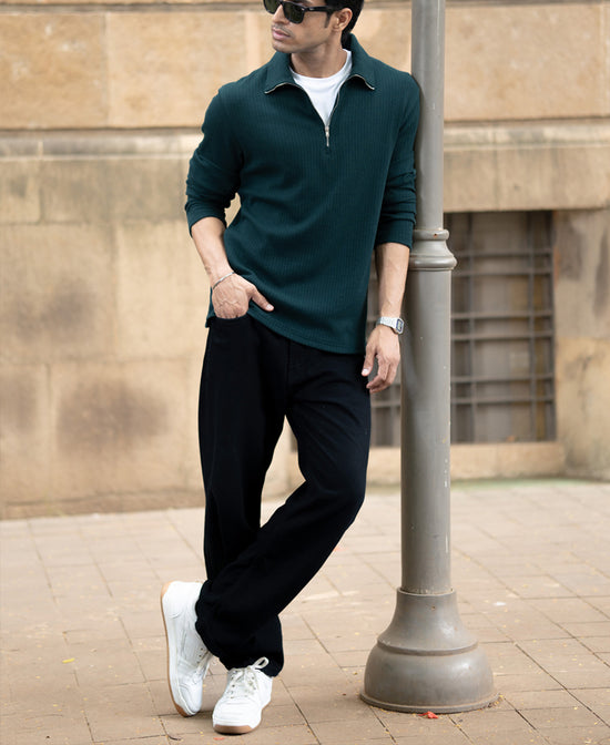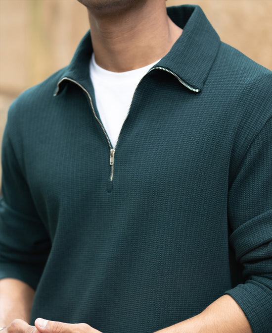 This one will be a truly unique piece for your wardrobe. Pine Structured Zipper T-Shirt. Crafted with a structured texture and half-zip neckline, this tee is the perfect mix of sporty and polished, ideal for casual days or smart layering.