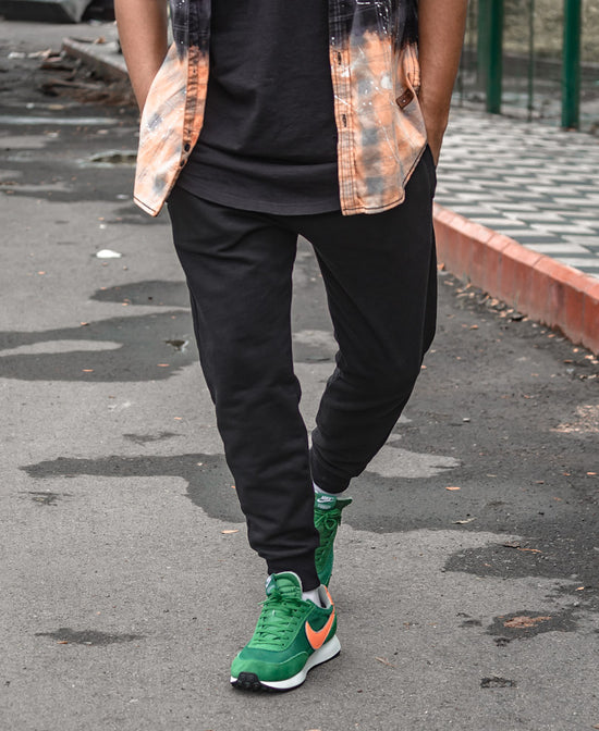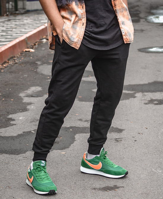 These Black plain joggers for men are designed to satisfy fashion requirements. They have an adjustable waistband and drawstring, large side pocket with seamless zip closure, and ankle fit. These Black plain joggers are crafted from premium fabric that gives comfort fit, and a soft feel. This black jogger best goes with printed shirts & men's accessories for a unique weekend look.