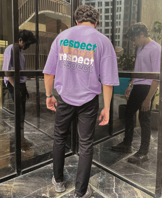 The word on the street is that you can't go wrong with our purple 'Respect' back print oversized t-shirts for men, featuring a ribbed neck, drop shoulders, and half sleeves. With its cotton fabric and relaxed fit, the oversized t-shirt maximizes comfort and style, whether you pair it with jeans or shorts.