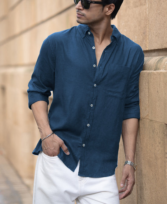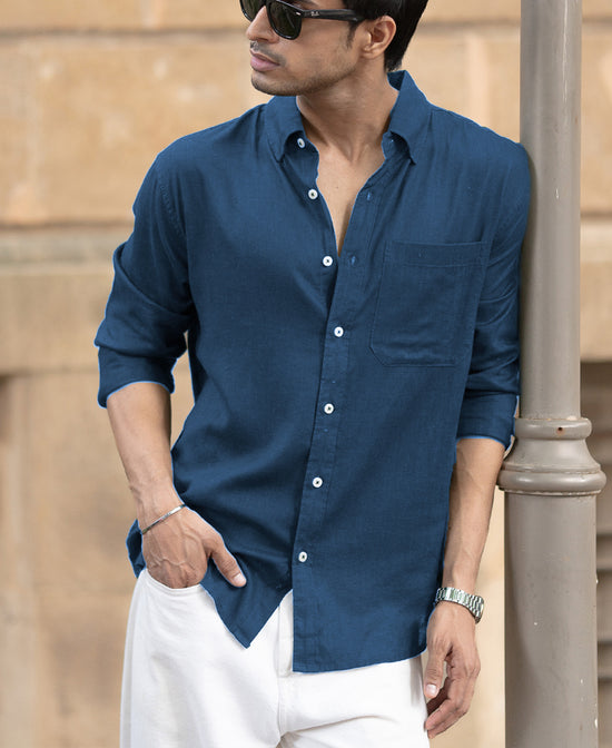 Cool, crisp, and undeniably classy. Crafted in a breathable linen blend, this royal blue shirt strikes the balance between smart and relaxed. Its clean silhouette and rich hue make it a versatile staple.