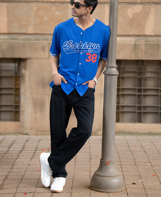 Elegance of royal blue with sporty energy. The mesh texture and bold print bring a stadium-ready vibe that works just as well for casual styling. Fresh, breathable, and always in play.