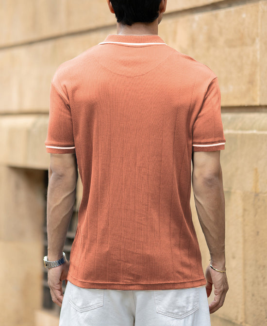 This russet knit polo gives you structure without stiffness, in a colour that’s warm, grounded, and just different enough to get noticed. Contrast tipping on the collar and sleeves adds the final detail to make this a refined staple. Looks equally good tucked or untucked, solo or layered.