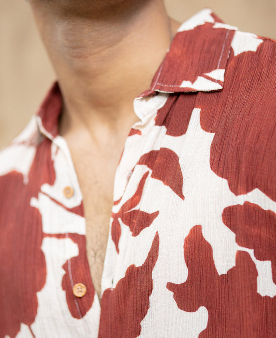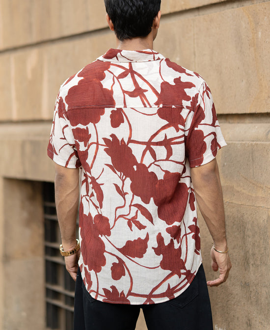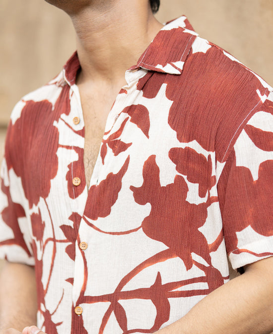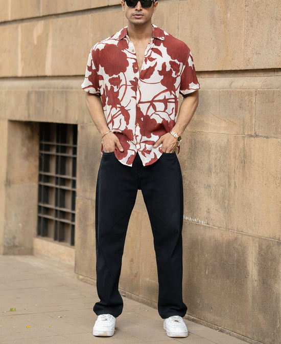 Whenever you're in the mood to paint the world abstract while keeping comfort close, reach for the Rust Floral Crinkled Print Shirt. With its spread collar, thoughtfully placed prints, and just-right hem, this shirt brings a laid-back charm through its soft texture and lived-in crinkle. The earthy floral pattern adds a playful yet grounded flair to your modern expressions—always a go-to when you want to stand out without trying too hard.