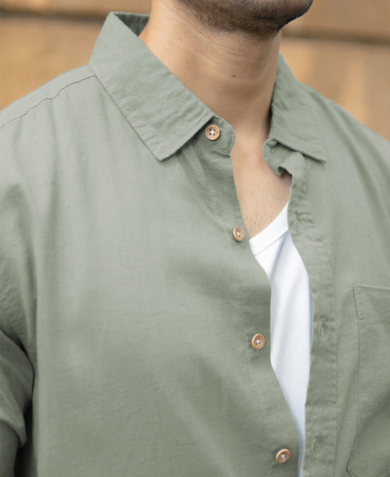 Effortlessly earthy. The sage green tone gives this linen-blend shirt a natural calm, while the tailored cut keeps it clean. It's the kind of shirt that does subtle style right.