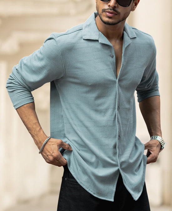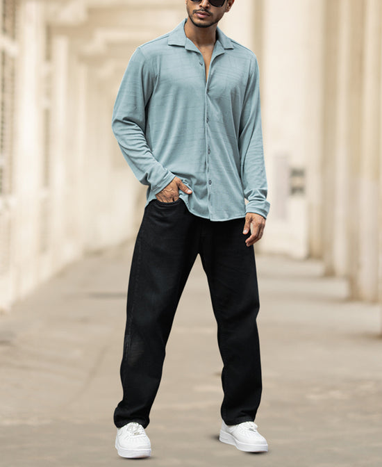Sky Blue Regular Fit Plain Full Sleeves Shirt
