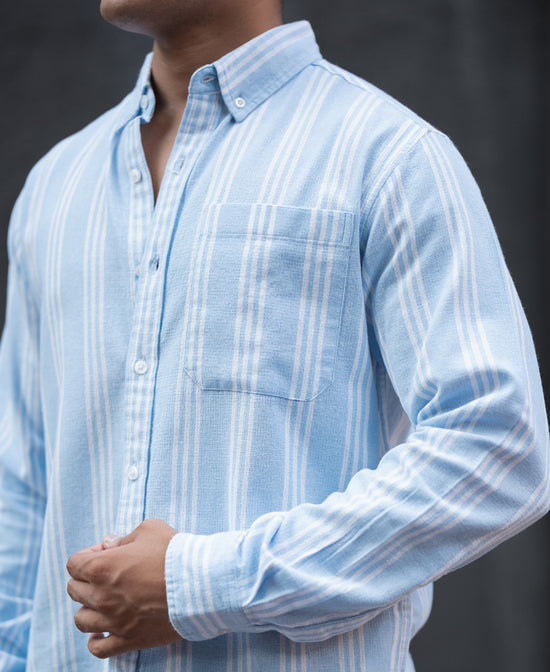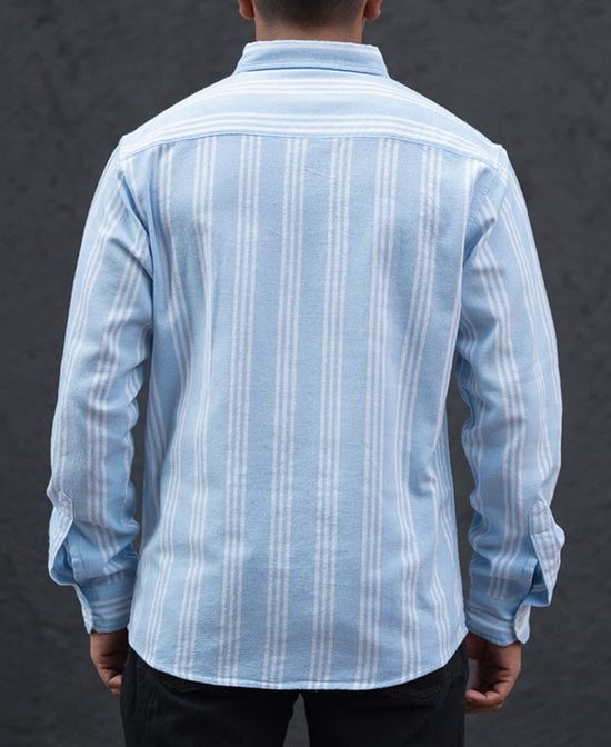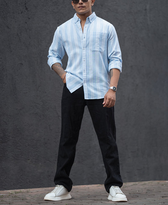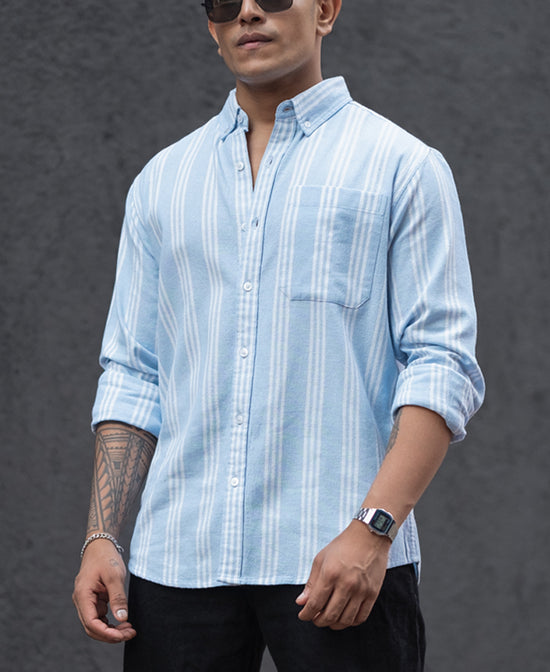 Sky Blue Stripes Regular Fit Full Sleeves Shirt