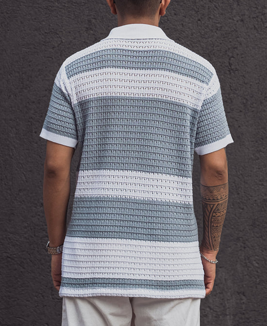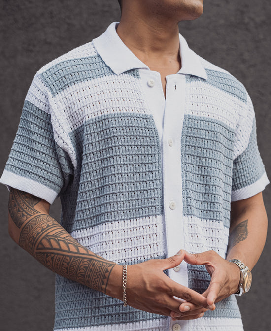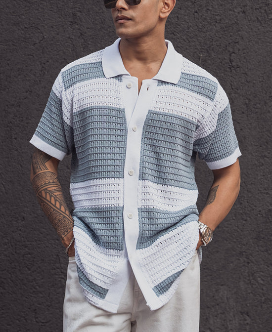 Sky Grey Structured Striped Regular Fit Half Sleeves Shirt