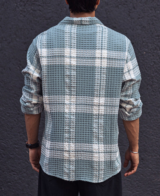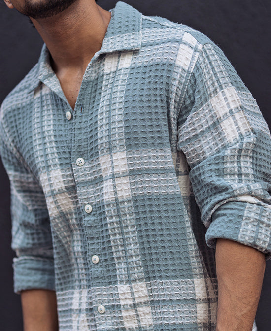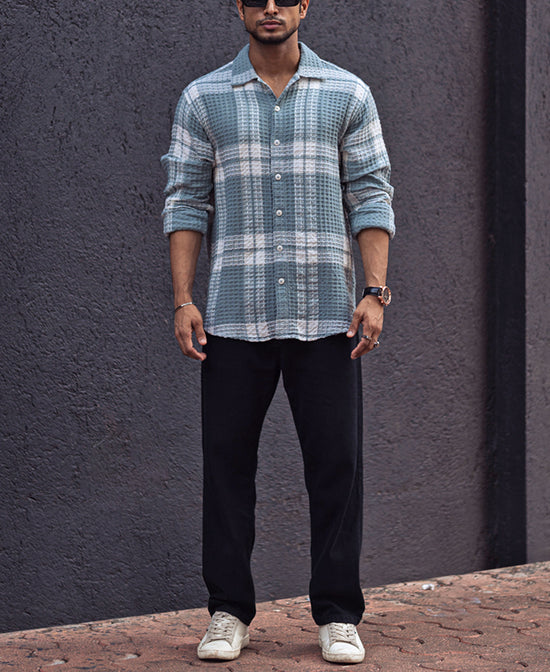 Sky Grey Waffle Checked Regular fit Full Sleeves Shirt