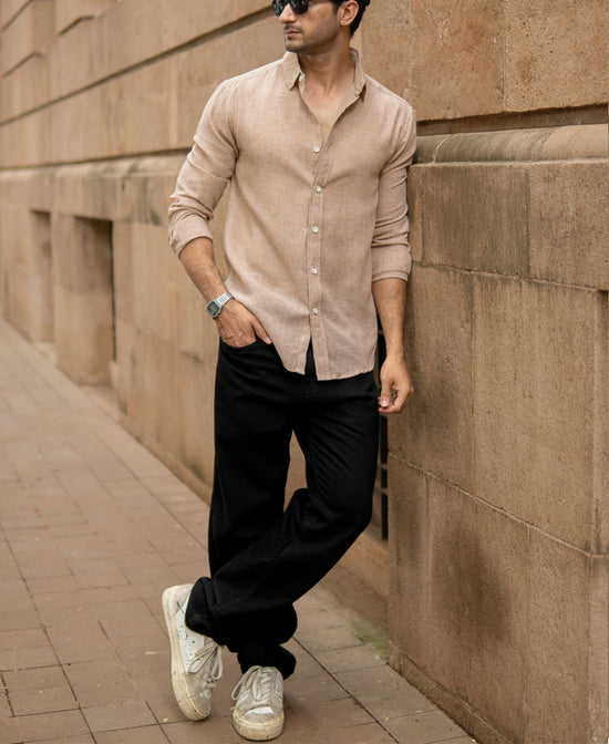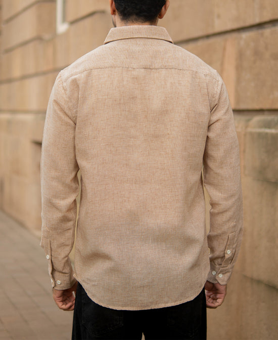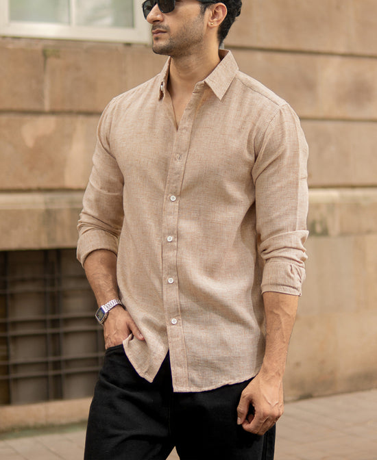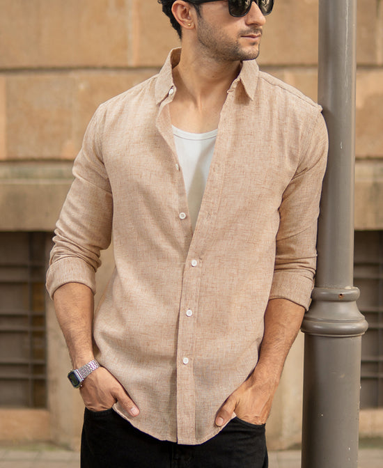 Evoking windswept dunes and golden sands, this Tan Lightweight Shirt is your visual passport to earthy elegance. The linen-touch texture breathes effortlessly, while the neutral palette makes it a versatile layer for any mood. Pair it with denim or chinos; it holds its ground to your style quietly and beautifully.