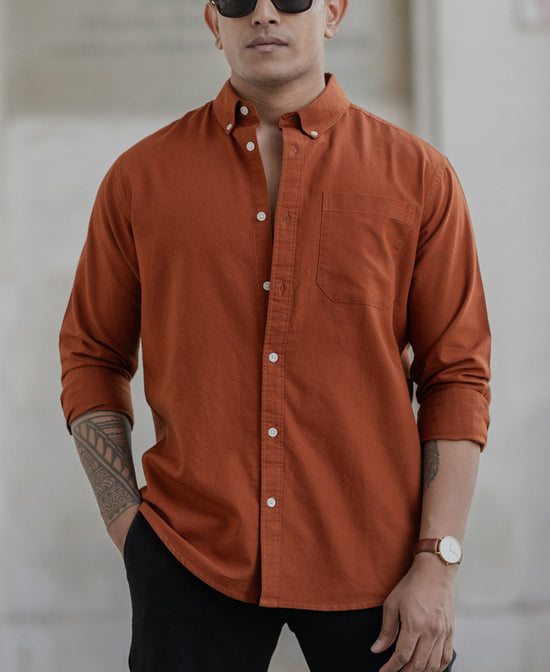 Tan done right. This shirt brings warmth and depth to your wardrobe with a neutral tone that never feels dull. Regular fit and full sleeves make it adaptable for anything your day demands. Effortless, functional, and undeniably stylish.