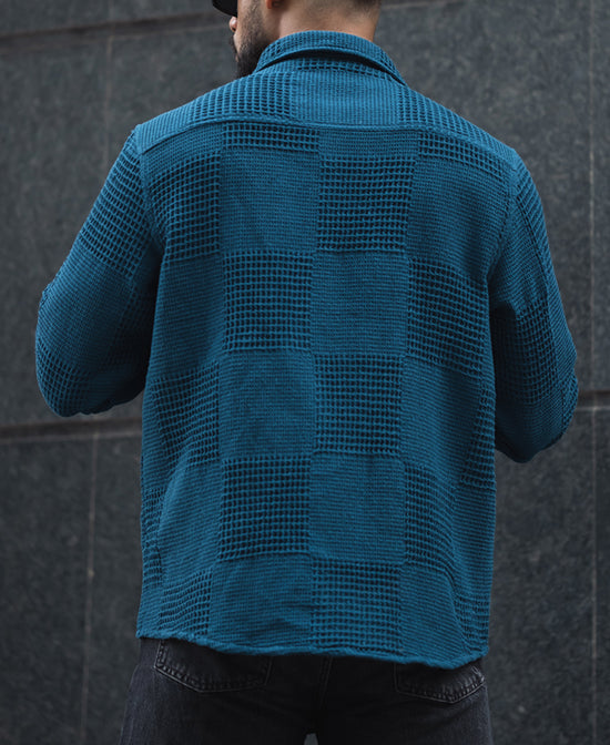 Teal Blue Waffle Structure Regular Fit Full Sleeves Shirt