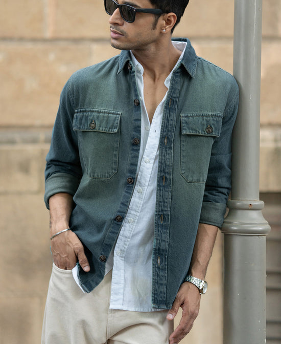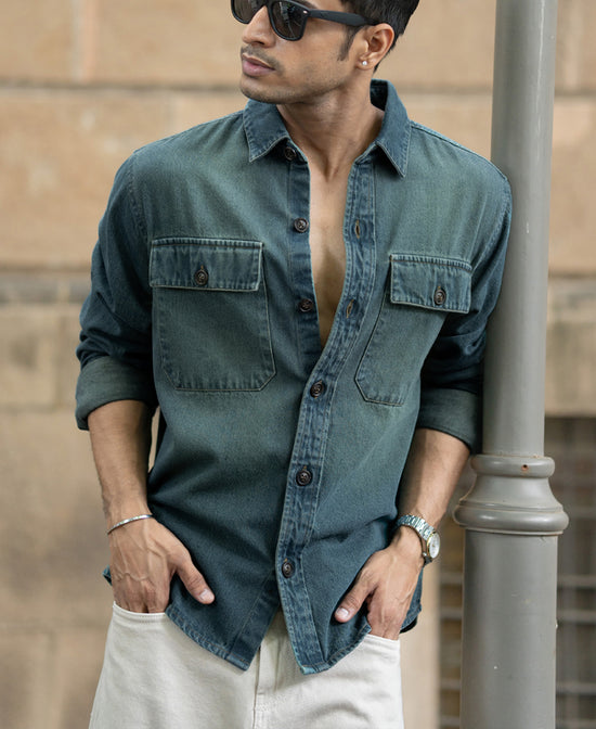 A denim overshirt with a soft, washed tint that feels lived-in in the best way. With dual pockets and a rugged finish, it’s built for layering, lounging, and late-night drives. Wear it open with a tee or buttoned for a sharper edge; either way, it hits.