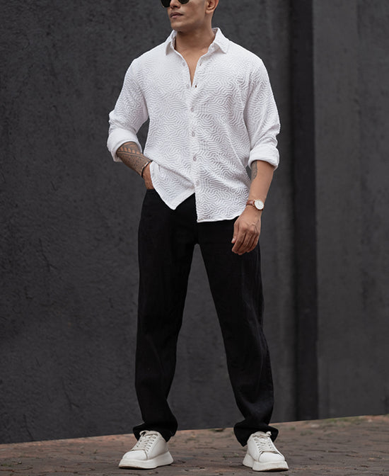 White Abstract Structured Regular Fit Full Sleeves Shirt